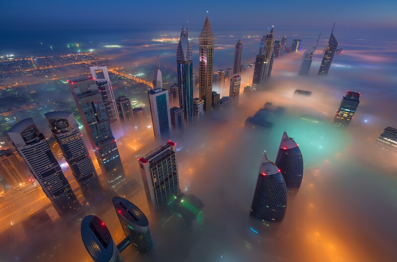 云霧中的迪拜謝赫·扎耶德大道。迪拜經(jīng)濟和旅游局供圖