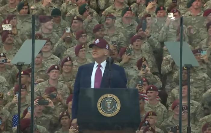 中新網(wǎng)6月11日電 根據(jù)白宮社交媒體賬號(hào)發(fā)布的視頻顯示,當(dāng)?shù)貢r(shí)間10日,美國(guó)總統(tǒng)特朗普在北卡羅來(lái)納州的軍事基地布拉格堡演講時(shí),現(xiàn)場(chǎng)豎起巨型防彈坡璃,高度可能超過(guò)兩米。