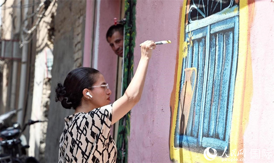 一名藝術(shù)家正在創(chuàng)作壁畫(huà)。人民網(wǎng) 伊納斯·易卜拉欣攝