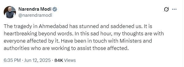 中新網(wǎng)6月12日電 當(dāng)?shù)貢r(shí)間12日,印度總理莫迪在社交媒體平臺(tái)上表示,此次印度航空墜機(jī)事件“令人心碎,難以言表”。
