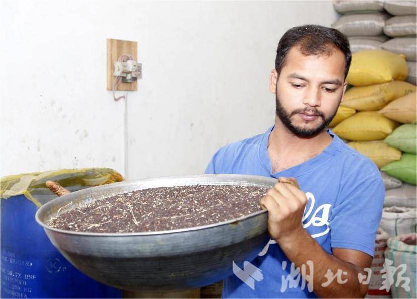 推上電閘,油菜籽在壓榨機中飛速旋轉(zhuǎn)。不一會兒,油香彌漫開來。望著金黃透亮的濃香小榨菜籽油流出油管,匯入桶中,現(xiàn)場圍觀的巴基斯坦農(nóng)民一片歡呼……