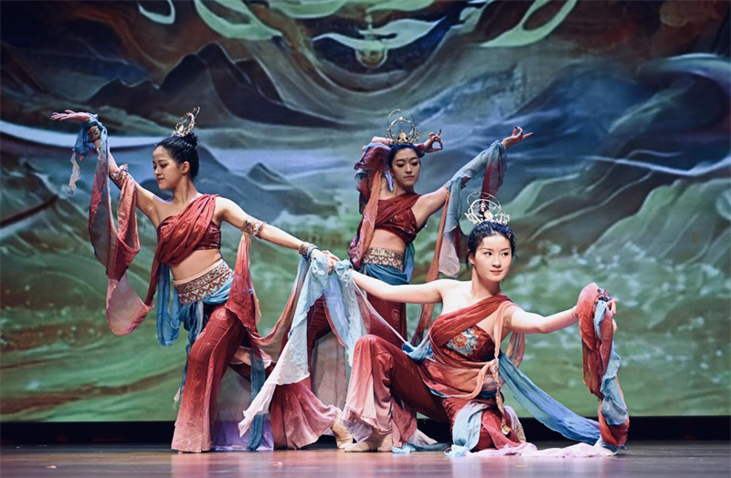 沈陽(yáng)音樂(lè)學(xué)院帶來(lái)的三人舞《石窟·日月》。新加坡中國(guó)文化中心供圖