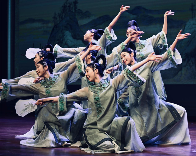 中國(guó)古典舞女子群舞《清風(fēng)徐來(lái)》。新加坡中國(guó)文化中心供圖