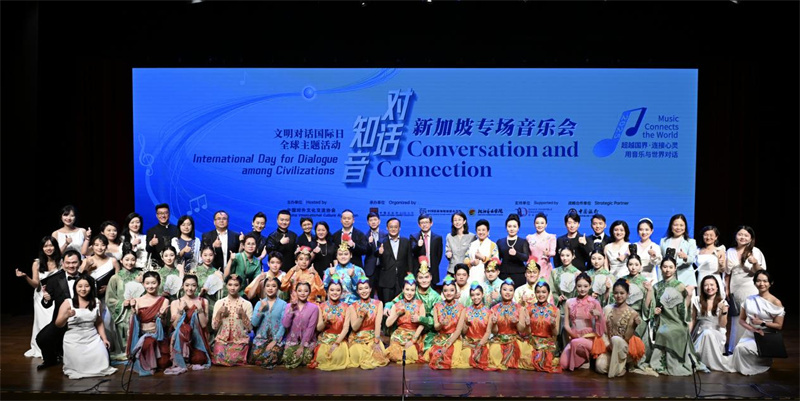 “對(duì)話·知音”——文明對(duì)話國(guó)際日新加坡專場(chǎng)音樂(lè)會(huì)謝幕合影。新加坡中國(guó)文化中心供圖