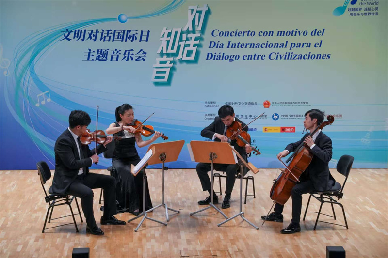 音樂會由中國交響樂團紫禁城弦樂四重奏傾情演繹。為體現(xiàn)文明交流互鑒的初衷,精心設(shè)計的曲目涵蓋中國傳統(tǒng)樂曲和西方經(jīng)典作品,從旋律昂揚的《金蛇狂舞》、清新優(yōu)雅的《茉莉花》、氣勢磅礴的《賽馬》到婉轉(zhuǎn)悠揚的貝多芬c小調(diào)第四號弦樂四重奏,在時而激蕩、時而細膩的旋律聲中,觀眾們仿佛穿梭于中華風(fēng)韻與西方古典之間,沉浸于多元文明交匯融合的藝術(shù)境界。音樂廳內(nèi)氣氛熱烈、掌聲雷動,許多西班牙觀眾表示,音樂的感染力沒有國界,中國傳統(tǒng)音樂所展現(xiàn)出的文化底蘊和情感共鳴令人震撼與感動。