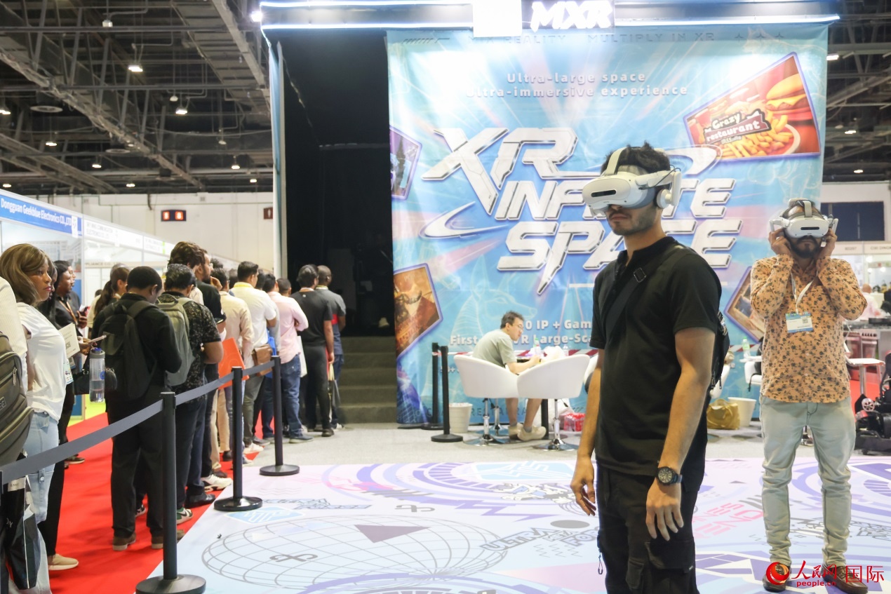 觀眾體驗(yàn)VR技術(shù)。人民網(wǎng)記者 任皓宇攝