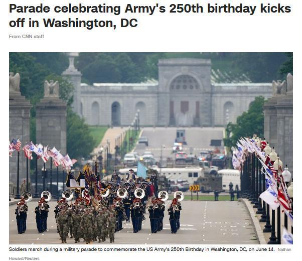 美東時(shí)間6月14日,華盛頓特區(qū)天氣陰,雷暴預(yù)警讓?xiě)c典提前開(kāi)始。這是美國(guó)政府時(shí)隔34年再次舉行閱兵式,旨在紀(jì)念美國(guó)陸軍成立250周年。