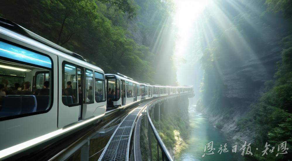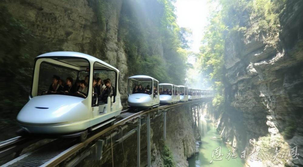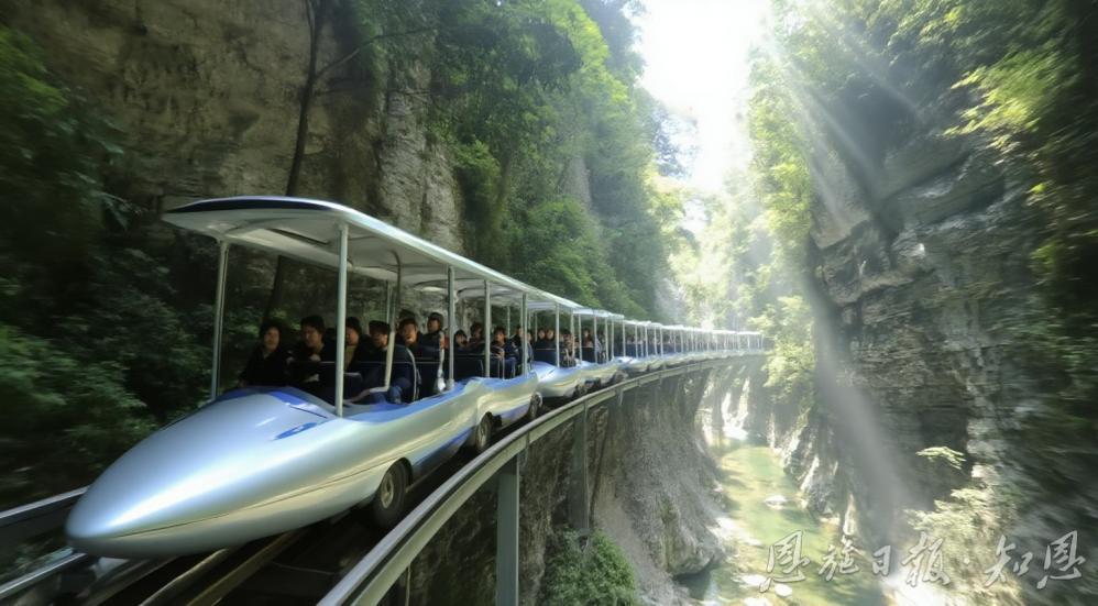 在過去,常規(guī)的步行棧道與纜車游覽方式,常使游客游覽路線受限,峽谷的諸多絕美之處被隱匿。地心谷敏銳捕捉到懸崖軌道車這一創(chuàng)新亮點,著力打造恩施峽谷旅游首條崖壁軌道交通項目,讓13分鐘航程成為穿越地心世界的文明切片。