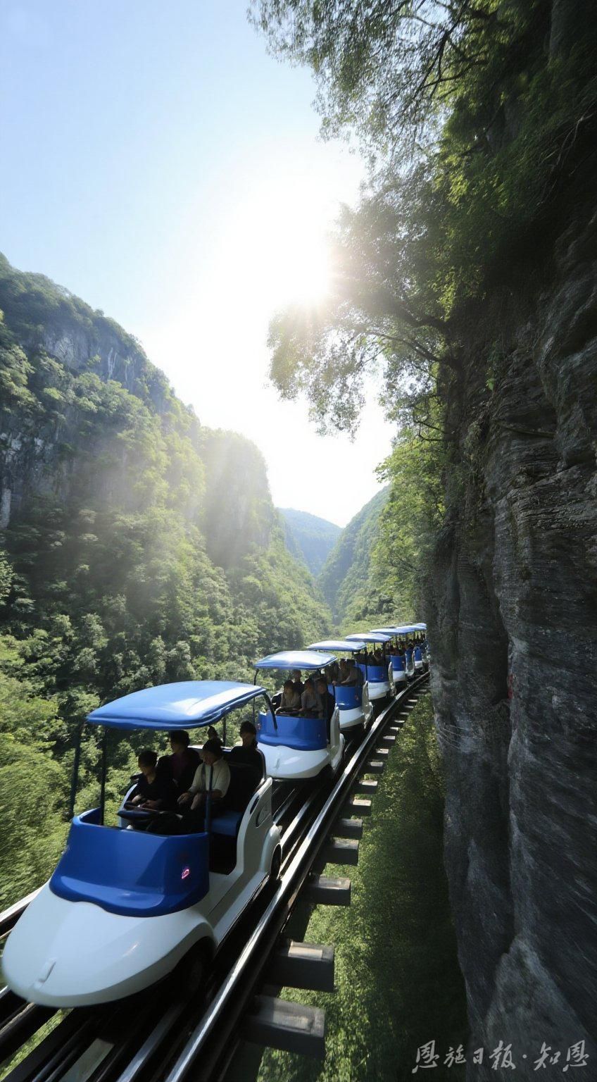 這是通向地球心臟的時光隧道——2400米的鋼鐵琴弦上,演奏出地質(zhì)紀(jì)元的交響詩。車窗成為天然IMAX銀幕,你將看到:飛瀑在腳下碎成鉆石雨,巖層紋路里凝固的遠(yuǎn)古海浪,突然從霧氣中探頭的彩虹… …200米落差奏響腎上腺素交響曲,軌道車以恰到好處的速度,讓每個轉(zhuǎn)彎都成為與石壁的驚鴻一吻。