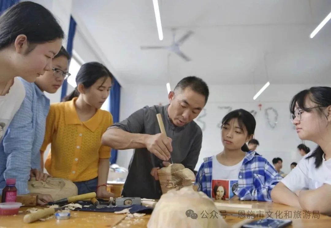 深化傳承人培養(yǎng),建立校地協(xié)同培養(yǎng)機制。支持、鼓勵非遺代表性傳承人先后在恩施職院、六角亭街道逸夫小學、芭蕉侗族鄉(xiāng)民族初中、崔壩鎮(zhèn)小學等20余所學校開展“恩施玉露制作技藝”“恩施板凳龍”“剪紙”“竹編”等非遺項目進校園工作。