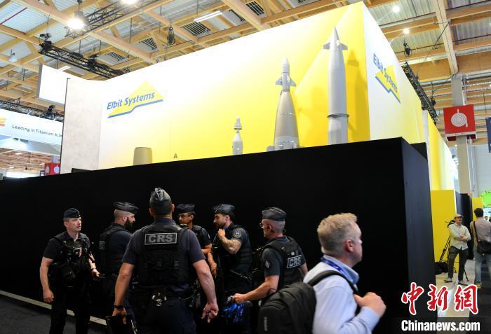 當?shù)貢r間6月16日,多家以色列防務企業(yè)在第55屆巴黎航展的展臺被法方關閉。圖為法國警察在被關閉的以色列防務企業(yè)展臺前巡邏。中新社記者 李洋 攝