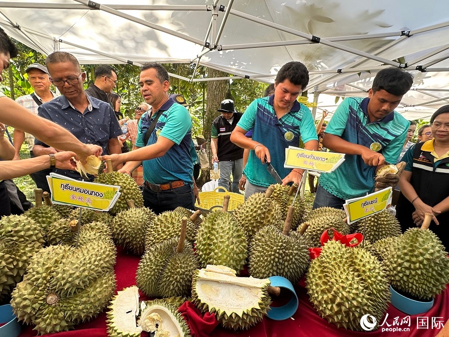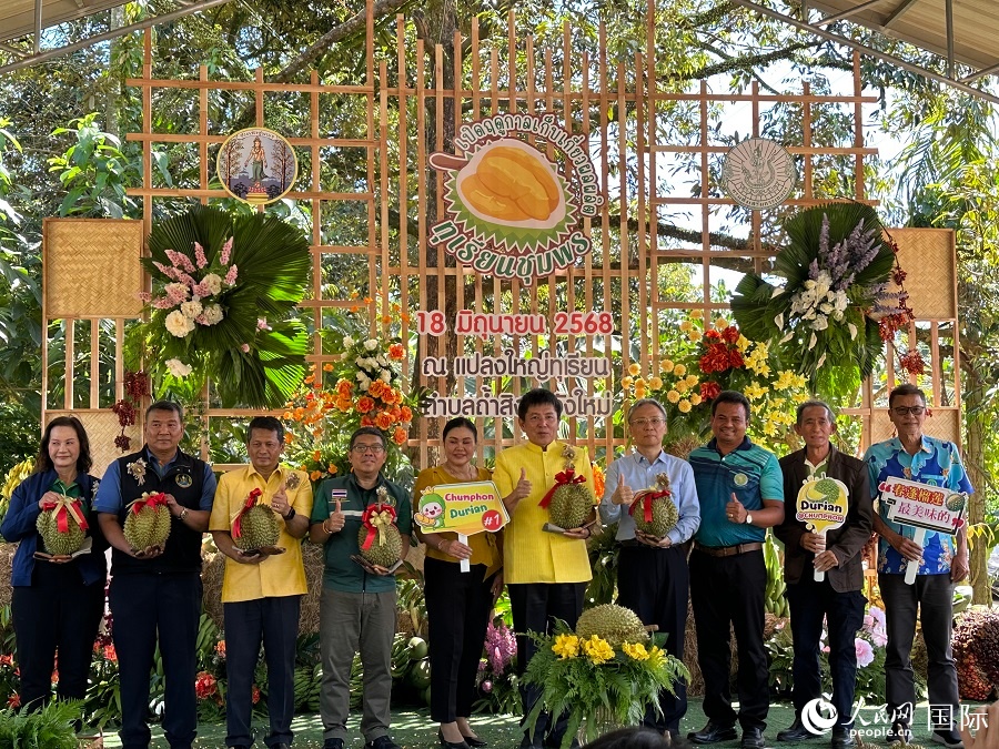 人民網春蓬6月18日電(記者孫廣勇)6月18日,泰國南部春蓬府舉辦榴蓮節(jié)。在位于春蓬府塔星鎮(zhèn)的榴蓮園,春蓬府府尹天猜和中國駐宋卡總領事汪志堅共同砍下了收割榴蓮第一刀,開啟2025年榴蓮收獲季。此次活動由春蓬府農業(yè)局主辦,2025年榴蓮采收季啟動儀式包含首顆榴蓮采收、榴蓮及相關產品品嘗展銷會等,以展示春蓬特色產品,向商家、投資者和游客展示春蓬榴蓮的優(yōu)質形象和產業(yè)潛力,增強市場信心。