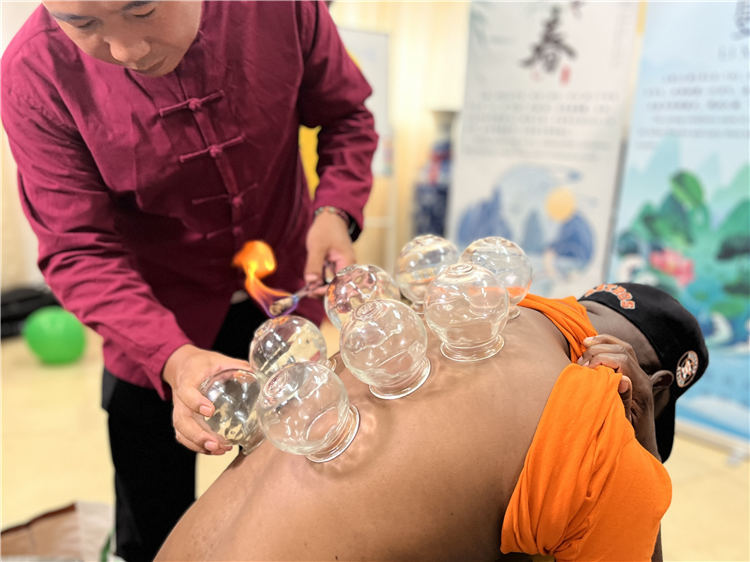 在中國傳統(tǒng)文化體驗環(huán)節(jié),來賓們親手參與漆畫書簽制作,感受工藝之美;中醫(yī)傳統(tǒng)技術(shù)展示更引起當?shù)孛癖姖夂衽d趣,中醫(yī)診脈、艾灸等體驗活動受到熱烈歡迎,醫(yī)療隊成員耐心講解,推動中醫(yī)藥文化“走出去”。