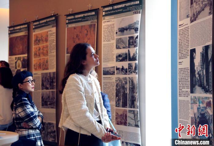當(dāng)?shù)貢r間6月23日,“從茶園到茶港——萬里茶道建筑遺產(chǎn)與茶文化雙主題展”在莫斯科中國貿(mào)易中心舉行。圖為俄羅斯青年學(xué)生參觀展覽。中新社記者 田冰 攝