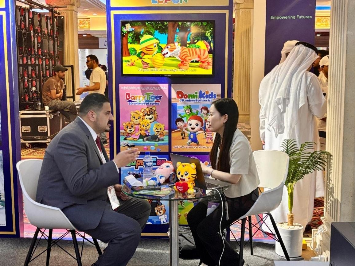 展臺重點(diǎn)推介的100多部中國視聽精品,涵蓋電視劇《大唐狄公案》《六姊妹》、紀(jì)錄片《兩岸家書》《海絲雙城記》、動畫片《貝樂虎》、微短劇《牌局》《外公的高考》、綜藝節(jié)目《心動的offer》等,吸引了阿拉伯地區(qū)主流媒體機(jī)構(gòu)和平臺到訪洽談。