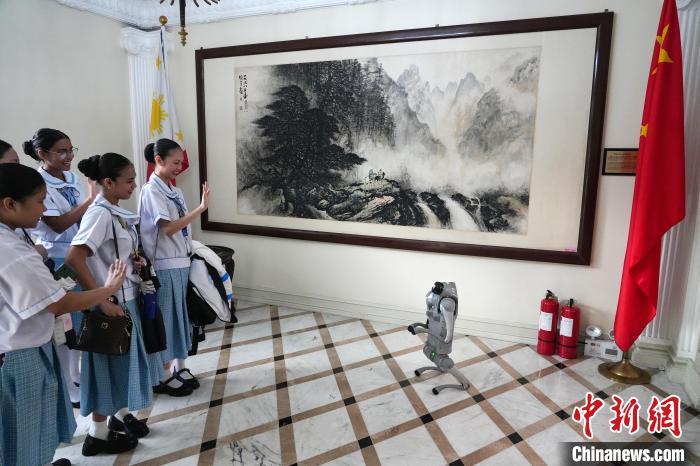 一走進(jìn)使館大廳,一臺宇樹科技機(jī)器人便上前“作揖迎賓”,不少菲律賓青年一時(shí)愣住,隨后紛紛揮手回應(yīng)?!斑@太酷了!”中學(xué)生杰爾尼興奮地對同伴說。