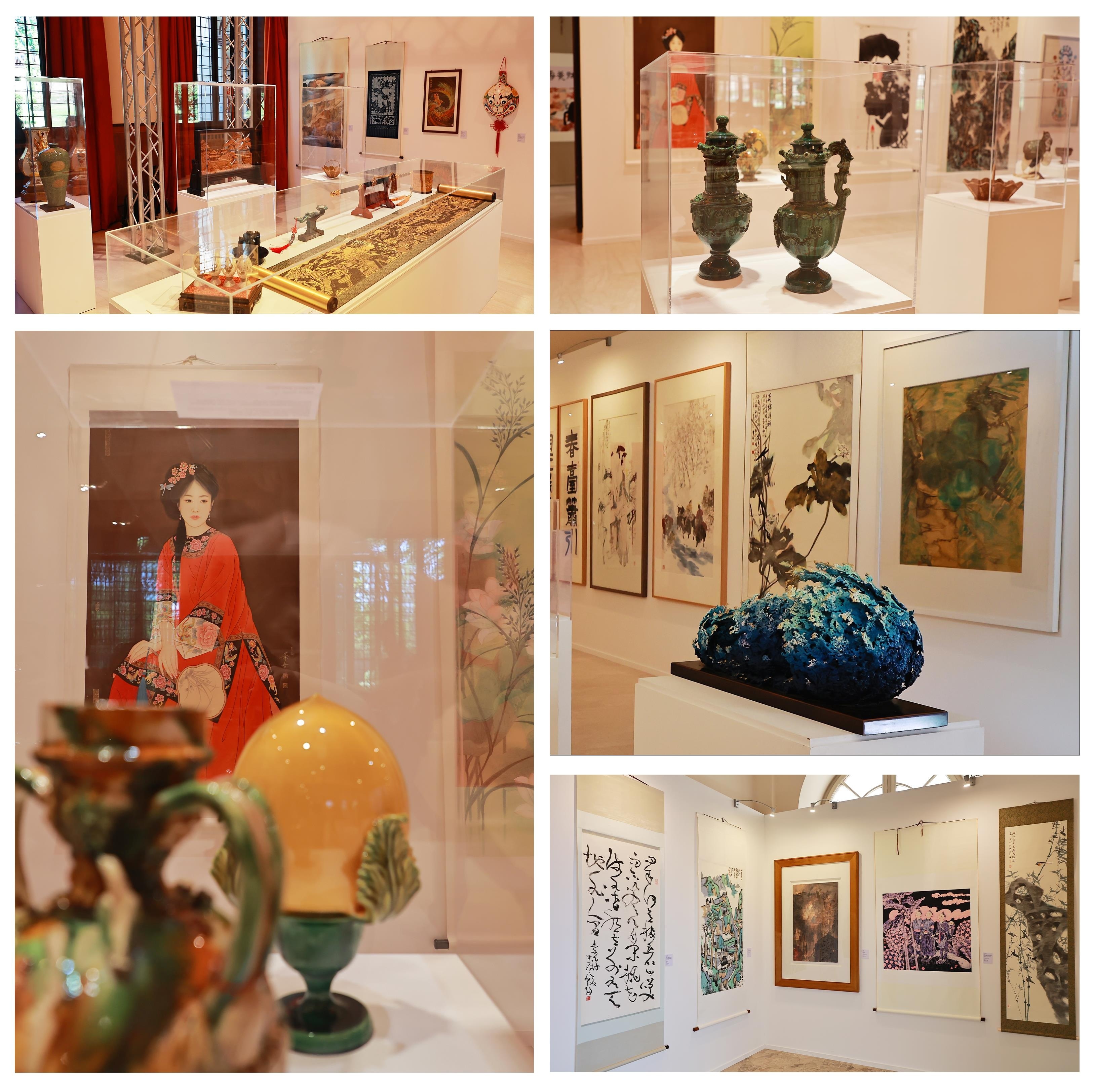 藝術(shù)特展由清華大學(xué)美術(shù)學(xué)院教授、敦煌藝術(shù)和工藝美術(shù)設(shè)計研究專家常沙娜擔任榮譽總顧問,展出來自100多位中國當代書畫名家、非物質(zhì)文化遺產(chǎn)代表性傳承人及工藝美術(shù)大師的200余件精品佳作,以及意大利人類文明博物館珍藏的百余件意大利藝術(shù)作品。中國全國政協(xié)副秘書長、民盟中央專職副主席、中國美術(shù)館館長吳為山,書畫家、鑒藏家、中國藝術(shù)研究院博士生導(dǎo)師、故宮學(xué)院中國畫研究院院長崔如琢分別為特展作序。展品聚焦兩國文化的獨特性與共通性,包括書畫、景泰藍、竹刻、刺繡、云錦、玉雕、剪紙等中華傳統(tǒng)技藝,以及意大利傳統(tǒng)服飾、陶器、銅器等珍貴文物藝術(shù)品,彰顯開放包容、多元共存的文明理念,構(gòu)筑跨越山海、溝通民心的友誼之橋。