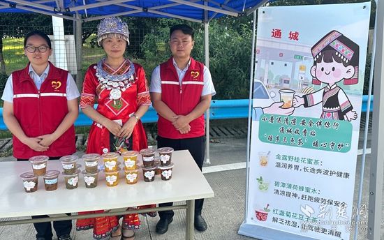 這是湖北交投通城管理所開展的“瑤鄉(xiāng)三色茶”送清涼活動。針對小暑高溫天氣,該所組織"瑤鄉(xiāng)雋妞"志愿服務隊,當日清晨7點開始熬制特色涼茶。"紅盞"菊花豆子茶解乏祛濕,"碧潭"薄荷蜂蜜水清涼提神,“金露”野桂花蜜茶溫潤養(yǎng)胃。每杯茶都附有手寫祝福便簽,傳遞滴滴瑤鄉(xiāng)情意。