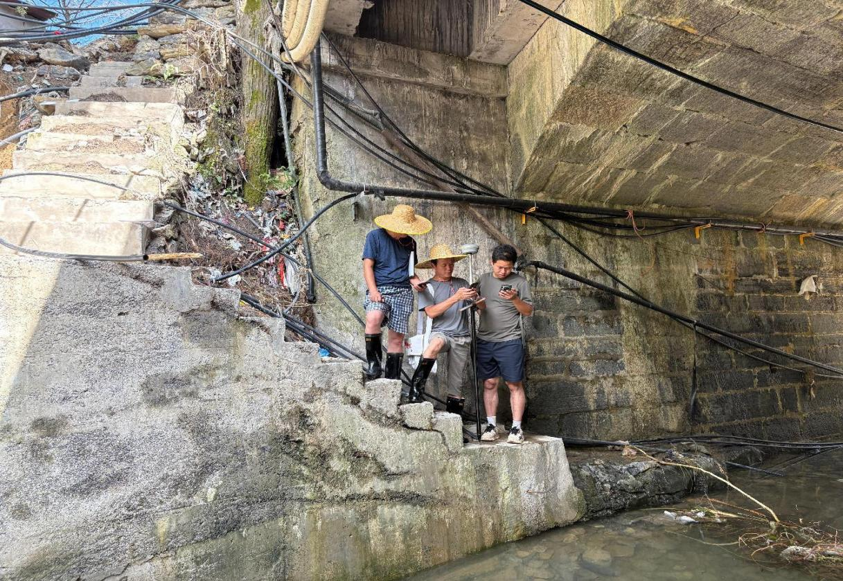 圖:外業(yè)組開展“六溝一河”橋梁箱涵測(cè)量工作
