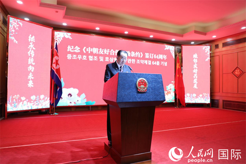 王亞軍表示,64年來,在兩黨兩國領(lǐng)導人的戰(zhàn)略引領(lǐng)和條約精神的有力指引下,中朝關(guān)系不斷煥發(fā)新的生機,傳統(tǒng)友誼歷久彌堅。當前,世界百年未有之大變局正向縱深發(fā)展,國際形勢變亂交織,風險挑戰(zhàn)層出不窮。落實好條約精神、發(fā)展好中朝關(guān)系更具重要現(xiàn)實意義。讓我們以條約精神為指引,遵照兩國領(lǐng)導人達成的重要共識,順應(yīng)兩國人民共同愿望,不斷維護好、鞏固好、發(fā)展好中朝關(guān)系,增進兩國人民福祉,推動人類發(fā)展進步。