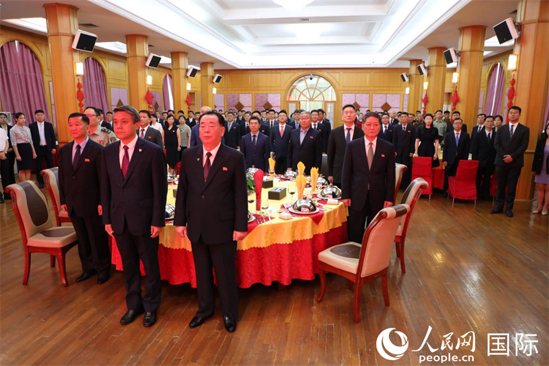 當?shù)貢r間7月9日,中國駐朝鮮大使王亞軍在使館舉行紀念《中朝友好合作互助條約》簽訂64周年招待會。人民網(wǎng)記者 劉融攝