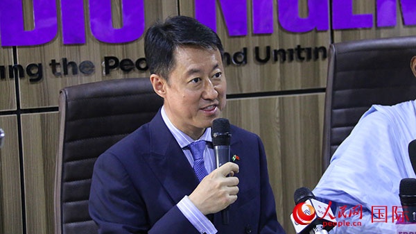 中國(guó)駐尼日利亞大使于敦海在“你好!中國(guó)”節(jié)目啟動(dòng)儀式上致辭。人民網(wǎng)記者 姜宣攝