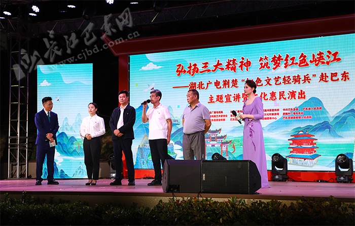 弘揚“三大精神”,筑夢紅色峽江。7月17日,湖北廣電荊楚“紅色文藝輕騎兵”主題宣講和文化惠民活動走進巴東,以鮮活的文藝形式、接地氣的宣講方式,宣傳黨的創(chuàng)新理論,把優(yōu)質(zhì)文化產(chǎn)品和服務(wù)送到百姓身邊。