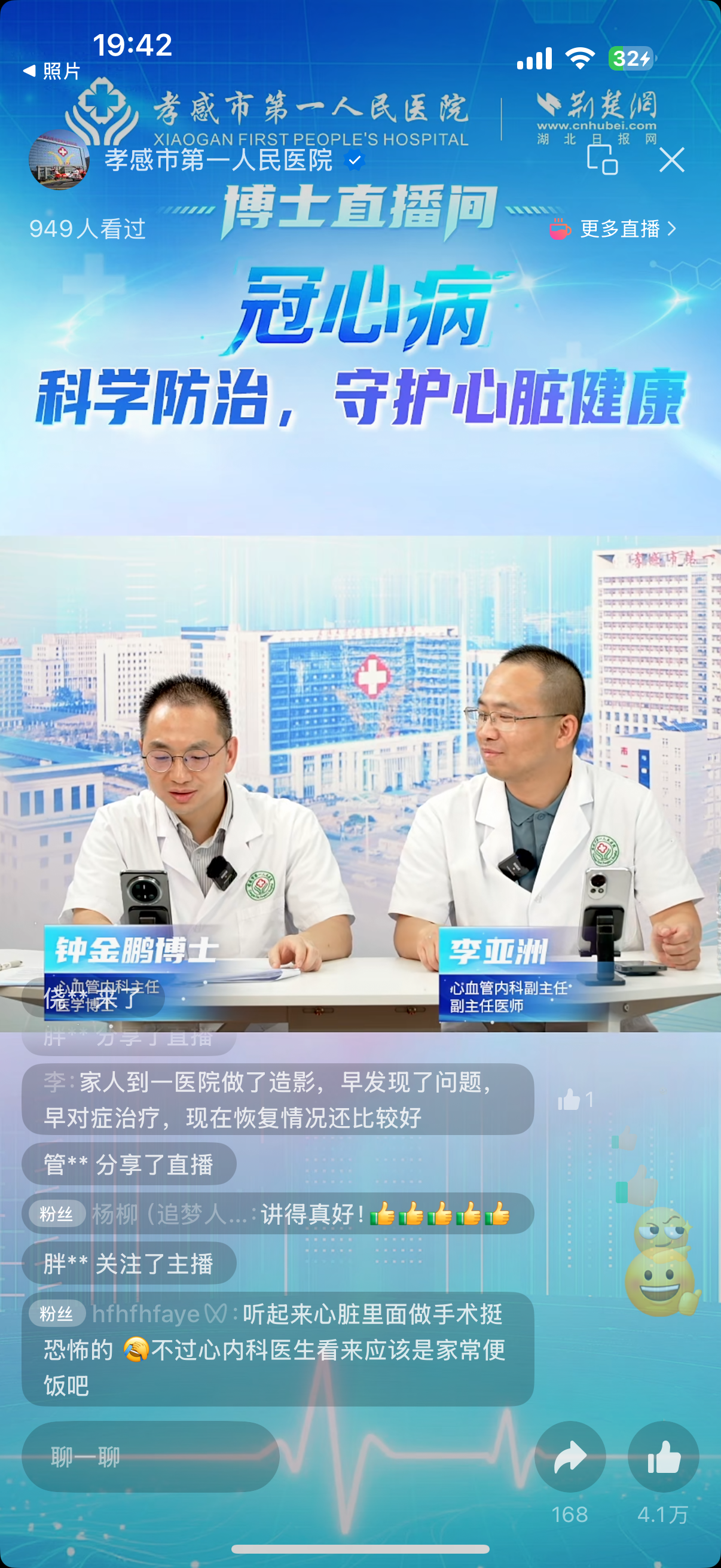 孝感市第一人民醫(yī)院黨委書記楊鵬鳴說,通過直播等數(shù)字化新媒體手段,把復(fù)雜的醫(yī)學(xué)知識(shí)轉(zhuǎn)化為老百姓聽得懂、用得上的健康指南,讓醫(yī)療服務(wù)從“院內(nèi)”延伸到“院外”,從“治療”前移到“預(yù)防”,真正實(shí)現(xiàn)“防病于未然,治病于及時(shí)”。