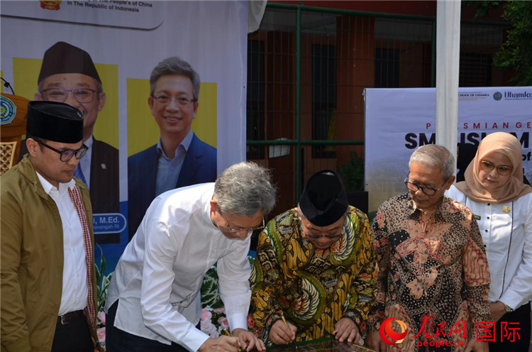 人民網(wǎng)雅加達(dá)7月24日電 (記者李培松)7月23日,中國(guó)駐印尼大使王魯彤與印尼基礎(chǔ)與中等教育部長(zhǎng)、穆聯(lián)秘書長(zhǎng)穆蒂等印尼嘉賓共同為中方援建的魯哈瑪職業(yè)高中新教學(xué)樓項(xiàng)目落成揭幕。