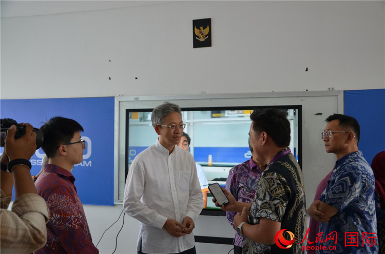 中國(guó)駐印度尼西亞大使王魯彤和印尼基礎(chǔ)與中等教育部長(zhǎng)穆蒂在簽名板上簽字。人民網(wǎng)記者 李培松攝