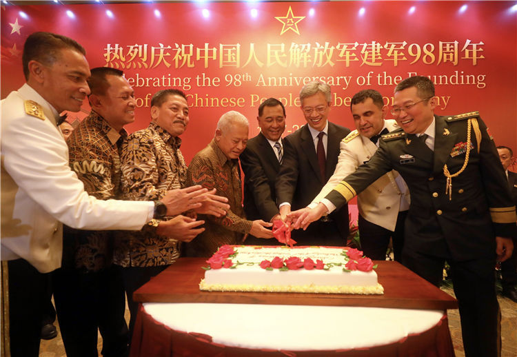 人民網(wǎng)雅加達7月24日電 (記者李培松、曹師韻)7月22日晚,中國駐印度尼西亞使館在雅加達舉行招待會,熱烈慶祝中國人民解放軍建軍98周年,中國駐印尼大使王魯彤等使館以及中國駐東盟使團外交官出席。印尼前國防部長普爾諾莫、國防部監(jiān)察長路易中將、國防大學校長安頓、前海軍參謀長馬塞提奧退役海軍上將等印尼軍政官員,各國駐印尼使節(jié)、武官,印尼工商界代表,駐印尼中資機構(gòu)代表,華僑華人代表等850余人參加。