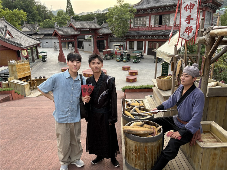 夜幕降臨,橫店影視城 “清明上河圖” 沉浸式夜游場(chǎng)景中,打鐵花的璀璨金焰與火壺表演的熾熱流光交織成震撼視覺盛宴。主播們的鏡頭精準(zhǔn)捕捉下,這充滿東方美學(xué)的精彩瞬間被傳遞給屏幕前的萬千觀眾。來自韓國(guó)的主播,同時(shí)也是今年“漢語橋”韓國(guó)賽區(qū)冠軍的鄭茶云感慨道,此前他從未聽說過橫店,而實(shí)地走進(jìn) “清明上河圖” 場(chǎng)景后讓他直呼 “真香”。這里不僅還原了古畫中繁華熱鬧的煙火氣,與扮演商販的演員討價(jià)還價(jià)時(shí),更讓他沉浸式感受到了北宋的人文風(fēng)貌。