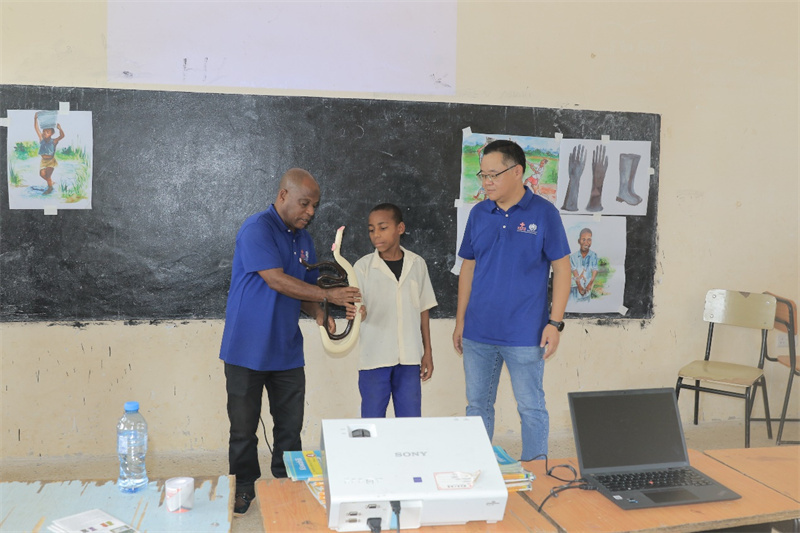 援桑血防項目近期持續(xù)監(jiān)測的結果顯示,兒童在積水坑塘、溝渠邊嬉戲的行為仍未杜絕,暴露防護意識亟待加強。為此,專家組重點針對學生群體,深入講解了血吸蟲的介水傳播鏈,更傳授了避免接觸疫水、穿戴防護裝備及安全用水等關鍵預防技能。