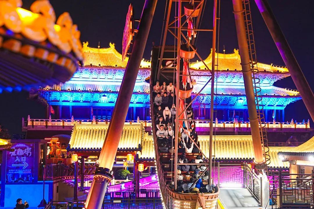 旋轉(zhuǎn)木馬《嘯騷千里》、過山車《龍騰鼓舞》、海盜船《神舟出?!贰w天轉(zhuǎn)盤《鳳舞九天》、道遙花燈《花燈初上》,大宋·皇家樂園,更適合中國(guó)寶寶的中國(guó)風(fēng)游樂園!