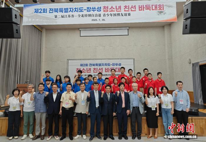 當(dāng)?shù)貢r(shí)間7月29日,第二屆江蘇省—全北特別自治道青少年圍棋友誼賽在韓國(guó)全州市舉行。圖為活動(dòng)合影。中國(guó)駐光州總領(lǐng)事館 供圖