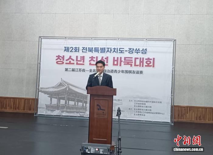 當(dāng)?shù)貢r(shí)間7月29日,第二屆江蘇省—全北特別自治道青少年圍棋友誼賽在韓國(guó)全州市舉行。圖為中國(guó)駐光州總領(lǐng)事顧景奇致辭。中國(guó)駐光州總領(lǐng)事館 供圖