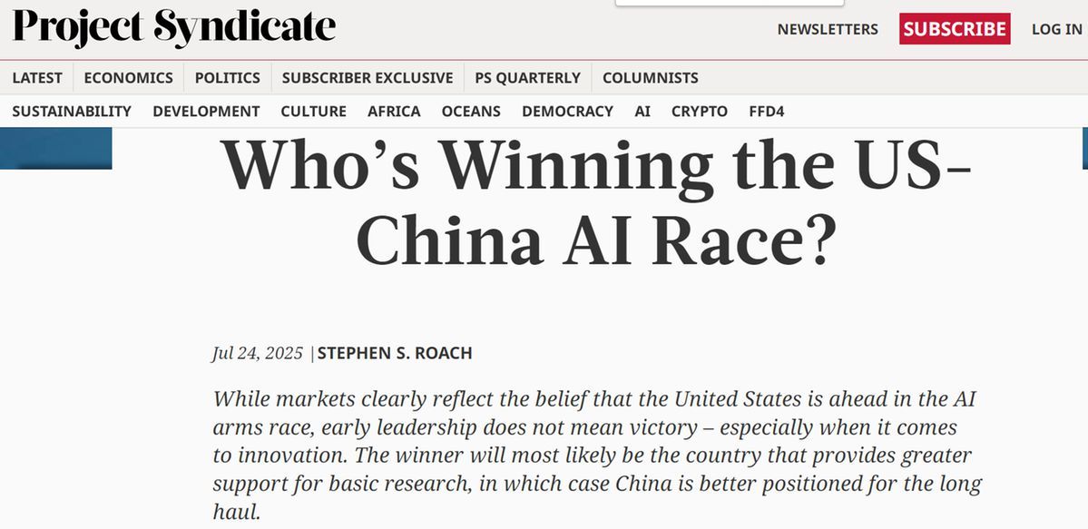 中國日報網(wǎng)7月30日電 美國摩根士丹利亞洲區(qū)前主席斯蒂芬·羅奇在報業(yè)辛迪加網(wǎng)站(Project Syndicate)發(fā)表文章指出,全球人工智能(AI)競賽的勝負(fù)取決于基礎(chǔ)研究的投入,而非短期市場表現(xiàn)。羅奇認(rèn)為,中國憑借產(chǎn)業(yè)生態(tài)、研發(fā)投入和文化傳統(tǒng),使其在長期競爭中占據(jù)優(yōu)勢。