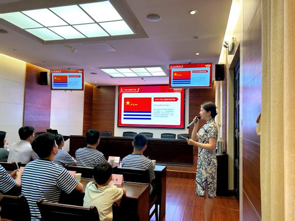 活動(dòng)伊始,辛亥革命博物院的老師為孩子們介紹了中國(guó)人民解放軍的光輝發(fā)展歷程、各種軍旗的設(shè)計(jì)含義及八一建軍節(jié)的由來(lái)和意義。隨后特邀武昌職業(yè)學(xué)院李亦偉教授、王浩然老師和朱世康老師進(jìn)行現(xiàn)場(chǎng)教學(xué)。李教授為孩子們講授了《捍衛(wèi)藍(lán)色疆域 爭(zhēng)做強(qiáng)國(guó)少年》的專(zhuān)題課程,王老師和朱老師則帶來(lái)了軍體特色科目——旗語(yǔ),孩子們認(rèn)真學(xué)習(xí),全情投入?,F(xiàn)場(chǎng)還舉行了氣氛熱烈的國(guó)防知識(shí)競(jìng)答,大家專(zhuān)心聆聽(tīng),積極搶答問(wèn)題,現(xiàn)場(chǎng)氣氛熱烈而有序,表現(xiàn)優(yōu)異的小朋友獲評(píng)為“答題王”,并獲得了精美的獎(jiǎng)品。在互動(dòng)體驗(yàn)環(huán)節(jié),武昌職業(yè)學(xué)院楊洋隊(duì)長(zhǎng)為孩子們示范標(biāo)準(zhǔn)軍姿,并對(duì)孩子們進(jìn)行現(xiàn)場(chǎng)指導(dǎo)。隨后,孩子們以畫(huà)筆為媒,書(shū)寫(xiě)下對(duì)人民子弟兵最誠(chéng)摯的敬意與祝福。湖北木蘭花社會(huì)服務(wù)中心副理事長(zhǎng)熊英聯(lián)手漢繡指導(dǎo)老師田宸輝向辛亥革命博物院捐贈(zèng)了漢繡黨旗和書(shū)法作品,以筆墨禮贊奮斗精神。