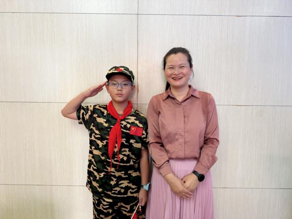 黃宜萌媽媽?zhuān)骸昂軜s幸能陪孩子參加軍事主題活動(dòng),看到孩子們認(rèn)真學(xué)軍姿、唱軍歌……特別欣慰!愛(ài)國(guó)教育從小抓起,我們每一代人都要銘記歷史,傳承紅色精神!”
