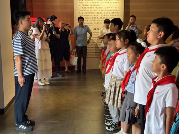 活動(dòng)尾聲,辛亥革命博物院小小講解員代表深情朗誦《少年中國(guó)說(shuō)》。全體學(xué)生齊聲高唱軍歌《強(qiáng)軍戰(zhàn)歌》,“聽(tīng)吧,新征程號(hào)角吹響,強(qiáng)軍目標(biāo)召喚在前方……”,雄壯的旋律在序廳久久回蕩,將現(xiàn)場(chǎng)氣氛推向高潮。