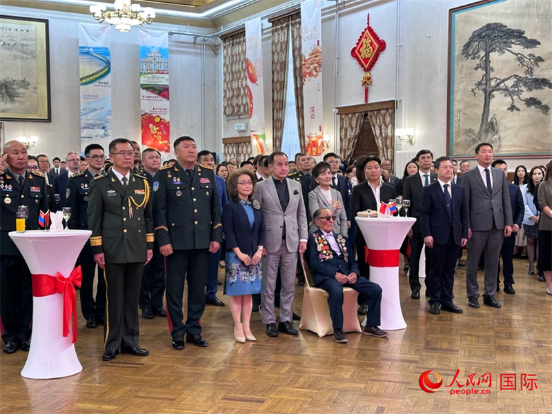 人民網(wǎng)烏蘭巴托7月31日電 (記者張朋輝)7月31日晚,中國駐蒙古國大使館舉辦慶祝中國人民解放軍建軍98周年、紀(jì)念中國人民抗日戰(zhàn)爭暨世界反法西斯戰(zhàn)爭勝利80周年招待會(huì)。中國駐蒙古國大使沈敏娟、國防武官張秀良大校,蒙古國國防部國務(wù)秘書岡呼亞格少將、國家大呼拉爾法律常設(shè)委主席朝格特巴特爾等蒙方官員,參加抗日戰(zhàn)爭老兵及家屬,各界友好人士及部分駐蒙使節(jié)等近300人參加了招待會(huì)。