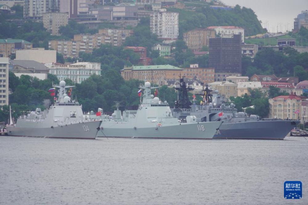這是7月31日在俄羅斯符拉迪沃斯托克某軍港拍攝的參加中俄“海上聯(lián)合-2025”聯(lián)合演習(xí)的中俄雙方部分參演艦艇。