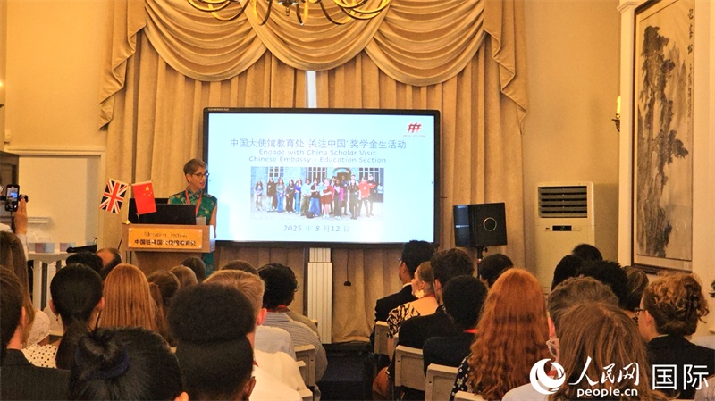 “關(guān)注中國(guó)”獎(jiǎng)學(xué)金項(xiàng)目學(xué)生代表與中英教育界人士出席招待會(huì)。楊浩鵬攝