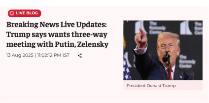 △印度經濟時報報道,特朗普表示希望與普京和澤連斯基舉行三方會談。