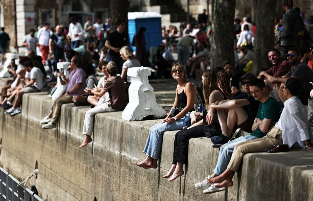 7月5日,人們?cè)诜▏?guó)巴黎塞納河邊消暑休閑。新華社記者高靜攝