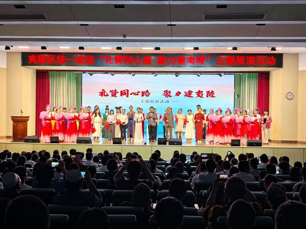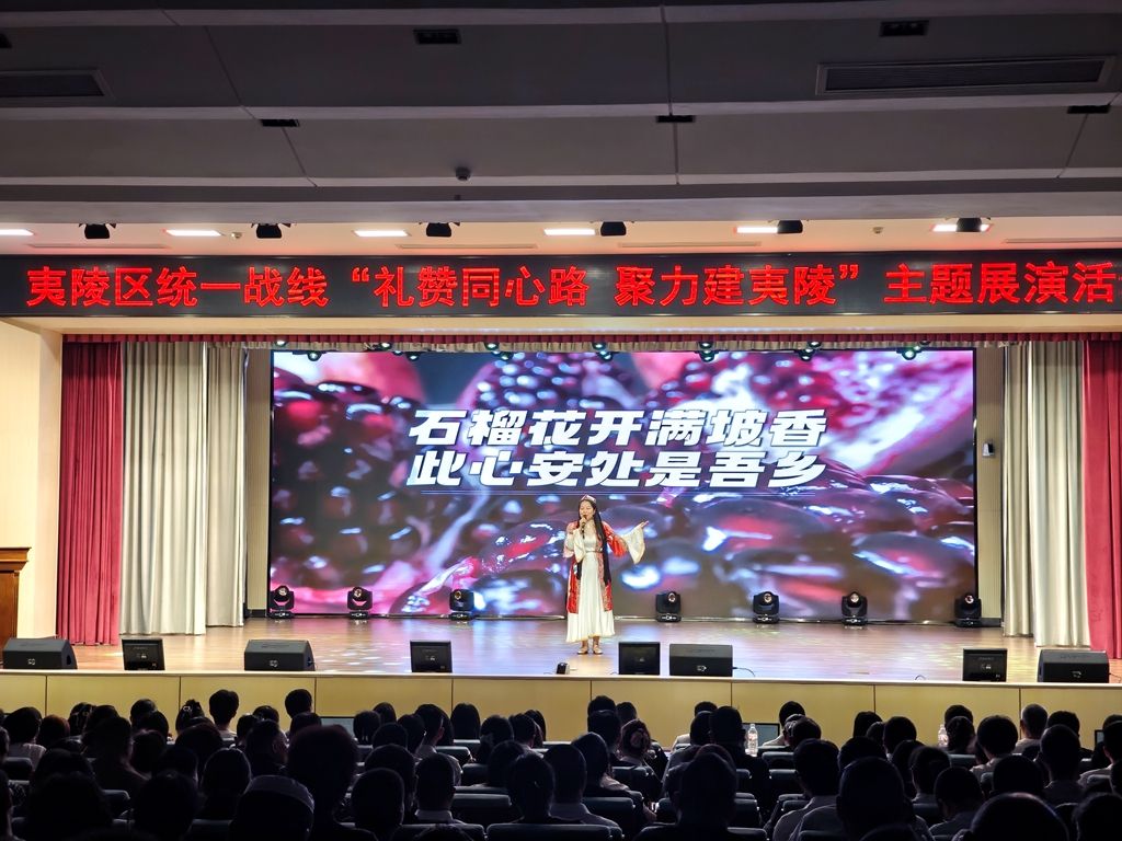展演活動(dòng)分初心啟征程、同心譜新篇、同行筑華章等三個(gè)篇章。活動(dòng)在精彩的舞蹈表演《青春飛揚(yáng)》中拉開帷幕。區(qū)民革黨員演講《我驕傲,我是一名民革人》,字字彰顯“風(fēng)雨同舟”的初心,詩朗誦《難忘》、情景劇《激流夜航》等節(jié)目,帶大家回望抗戰(zhàn)時(shí)期的烽火歲月;政法系統(tǒng)帶來的詩朗誦《憲法,我向您宣誓》、農(nóng)工黨夷陵支部表演情景劇《走在春風(fēng)里》等節(jié)目,生動(dòng)展示了新時(shí)代統(tǒng)戰(zhàn)成員圍繞中心、服務(wù)大局,在各自領(lǐng)域建功立業(yè)的實(shí)踐風(fēng)采;演講《僑心報(bào)國,花木傳情》《從建設(shè)者到見證者——三代三峽人的時(shí)代答卷》,情景劇《遇見瀑布 情歸夷陵》等節(jié)目呈現(xiàn)了夷陵統(tǒng)一戰(zhàn)線成員凝心聚力、攜手共創(chuàng)夷陵美好未來的堅(jiān)定決心與生動(dòng)實(shí)踐。