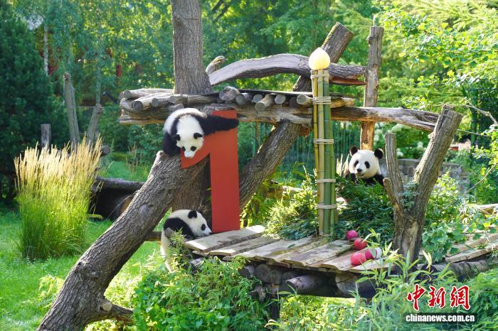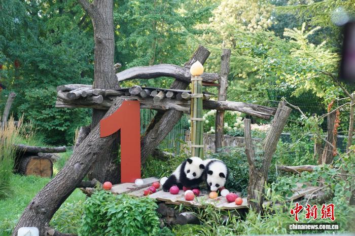 這對大熊貓雙胞胎是旅德大熊貓“夢夢”于2024年8月22日誕下的一對雌性雙胞胎。這是德國第二次迎來大熊貓誕生。它們在慶生活動中調(diào)皮地爬上竹子蠟燭,不時舔著冰彈珠,還在攀爬架上你追我趕,玩得不亦樂乎。