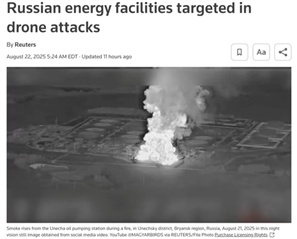事實(shí)上,俄烏戰(zhàn)火過去幾天非但沒有冷卻,反而有所升溫。俄軍襲擊了烏克蘭西部的美資電子工廠,烏軍次日予以報(bào)復(fù),對(duì)俄方輸油管實(shí)施打擊。這些事實(shí)共同解釋了特朗普“制裁威脅”的背景,也勾勒出了阿拉斯加會(huì)晤后俄烏局勢(shì)的主線——雙方都在以火力校準(zhǔn)談判價(jià)碼。