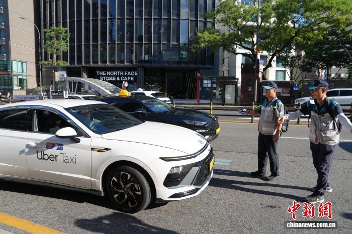 當(dāng)?shù)貢r(shí)間8月22日下午,工作人員在首爾明洞地鐵站附近開展針對(duì)出租車不良營運(yùn)行為的整治行動(dòng)。中新網(wǎng)記者 劉旭 攝