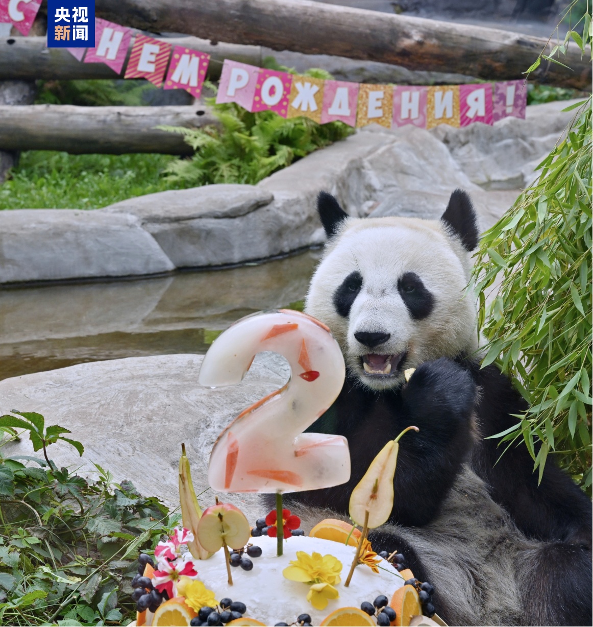 8月24日是首只在俄出生大熊貓“喀秋莎”兩歲的生日。在莫斯科動物園,“喀秋莎”收到了一個由竹材與樹葉搭建的小屋,還有一個用竹子、水果和冰制成的生日蛋糕。